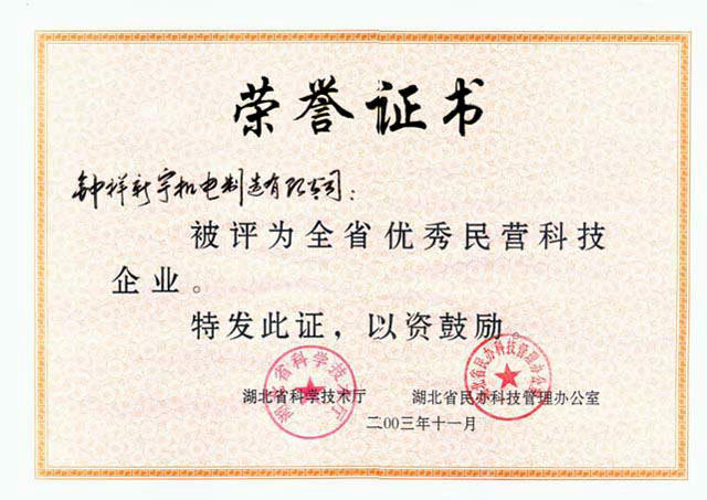 全省優(yōu)秀民營科技企業(yè)