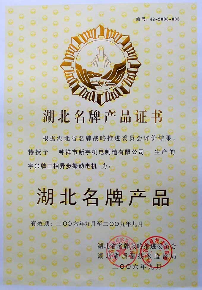 湖北名牌產(chǎn)品證書