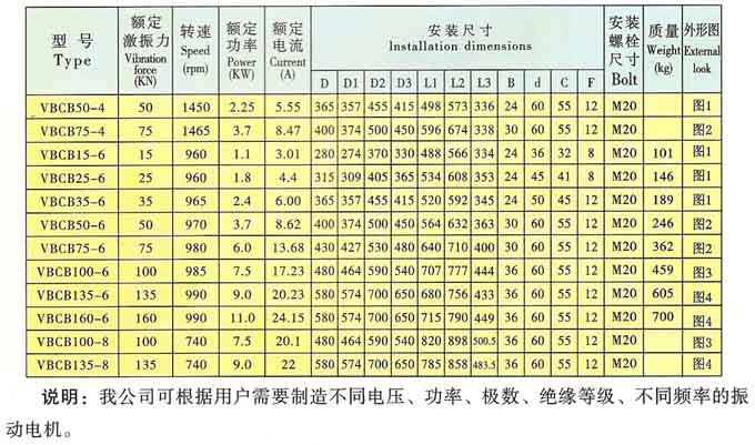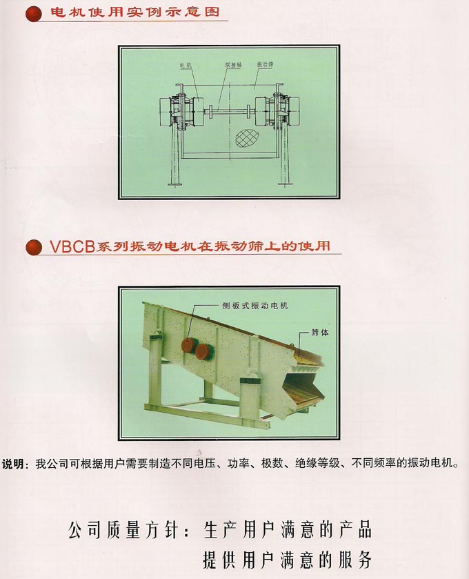 VBCB系列三相異步振動(dòng)電機(jī)是我公司自主開發(fā)的新產(chǎn)品,擁有自主知識產(chǎn)權(quán),受國家法律保護(hù)。與普通振動(dòng)電機(jī)相比,它省去了振動(dòng)機(jī)械復(fù)雜的電機(jī)底板結(jié)構(gòu),電機(jī)直接安裝在振動(dòng)機(jī)械的側(cè)板上,可使振動(dòng)機(jī)械實(shí)現(xiàn)圓運(yùn)動(dòng)或直線運(yùn)動(dòng),同時(shí)可使振動(dòng)機(jī)械重量減輕,機(jī)體剛度要求減小,減少振動(dòng)機(jī)械的能耗,安裝維護(hù)方便、單機(jī)激振力大、壽命長(達(dá)10000小時(shí))。它廣泛運(yùn)用于電力、建材、煤炭、化工、礦山、冶金、輕工、鑄造等行業(yè),主要適用于大型篩分設(shè)備,由于其獨(dú)特的特點(diǎn),可逐步替代軸偏心、塊偏心等其它類型的激振源,同時(shí)為我國大型振動(dòng)機(jī)械提供了新型、可靠的激振源。