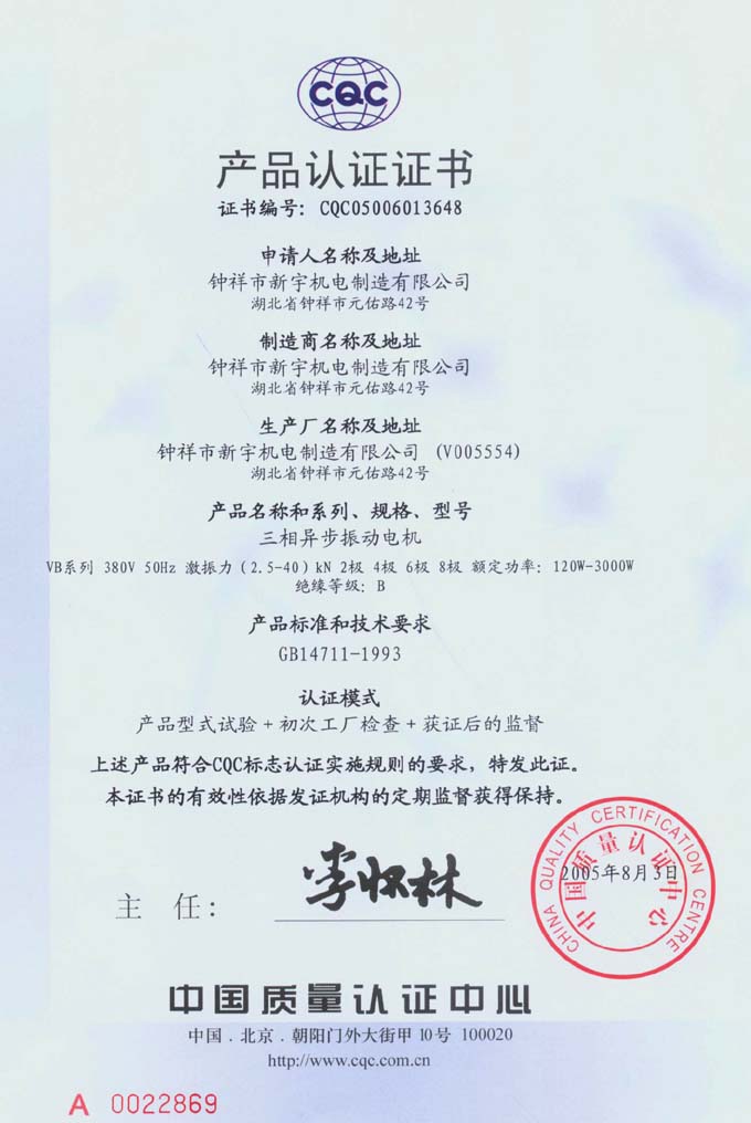 CQC產(chǎn)品認證證書